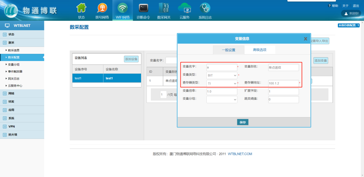 设备配置主要定义设备通讯协议、IP地址、端口号、设备类型及采集周期等。