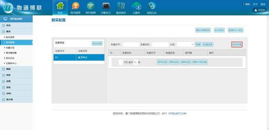 登录网关管理界面,点击数采->数采配置->添加设备。