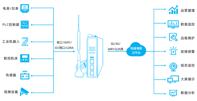 支持5G、4G、WIFI、LORA、有线以太网等接入方式