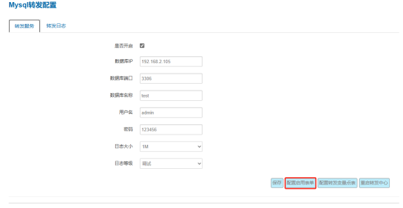 在该界面勾选以启用对应表的转发功能,并且可以设置表名称以及表头字段名称