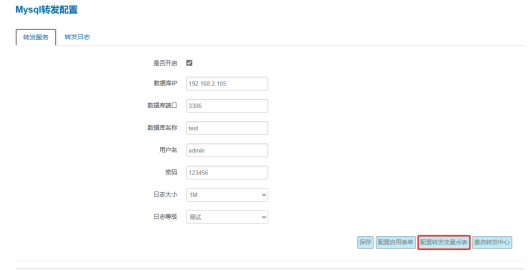 3、配置转发变量点表,也可进入历史横表字段配置