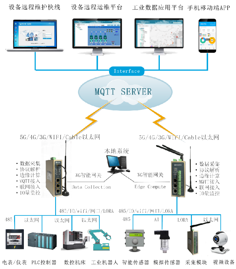LORA等不同联网方式,支持不同类型型号设备连接,支持采集各种PLC,仪器仪表,水环保,电力设备,CNC等各种工业设备数据,具有协议解析,边缘计算的高可靠性工业智能网关,支持MQTT方式接入k豆kdpay钱包AI云平台、第三方云平台如根云、百度云、阿里云等,支持适配自由云平台,支持定制适配云平台