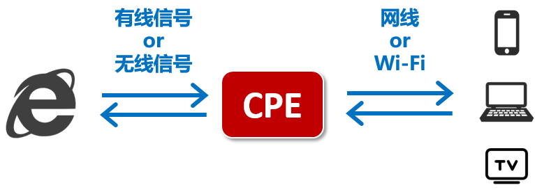 CPE的定义,既是Customer Premise Equipment——客户终端设备。实际是一种接收移动信号并以无线wifi信号转发出的移动信号接入设备,它也是一种高速将4G或者5G信号转换成wifi信号的设备,可支持同事上网的移动终端数量较多,CPE可大量应用于农村,城镇,医院,单元,工厂,小区 等无线网络接入,能节省铺建有线网络的成本。